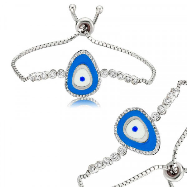 Nazar boncuğunu insanlar uzun yıllardan beri kötü bakıştan korunmak için kullanmışlardır. Kötü bakışların insanlar üzerinde olumsuz etki oluşturmasına karşı bir önlemdir nazar boncuğu… Bu sebeptendir ki insanlar sevdiklerini korumak için nazar boncuğu takmaktadır. Bu nazar bileklik de şıklığı ve zarafeti yansıtıyor. Her dönem sevilen ve şıklığından ödün vermeyen bu modeli ; doğum günü hediyesi, sevgililer günü hediyesi veya annelere hediye olarak özel günlerde tercih edebilirsiniz. Asansörlü nazar bayan bileklik, 925 ayar gümüşten imal edilmiştir. Gümüş üzerine rodyum kaplama yapılmıştır. Rodyum kaplama yapılan gümüş bayan bileklikler parlaklığını uzun süre muhafaza eder, oksitlenmesi gecikir. Üzerinde bulunan taşlar zirkondur. Bileklik asansörlüdür ve bileğinize göre ayarlanabilir. Tüm gümüş bayan bilekliklerinde olduğu gibi bu gümüş asansörlü nazar bayan bileklik modeli de tamamı el emeği ile üretilmiştir. Gümüş ve değerli taşlar nedeniyle belirtilen ortalama ürün ağırlığında ± %10 sapma olabilmektedir.