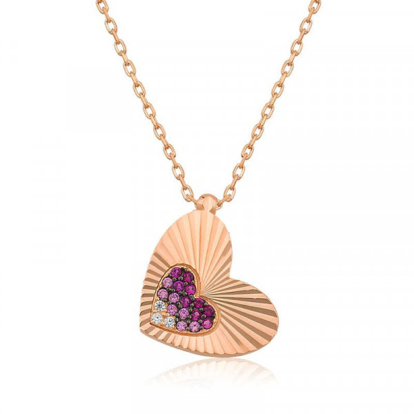 Kalp simgesi daima koşulsuz sevginin ve aşkın sembolü olmuştur. Dini öğretilerde ise kalbin gücü sınırsızdır. Çünkü kalp Yaradanın evi, bizim ise evrene açılan gerçeklik kapımızdır. İki kalp kolye sizi ve sevgilinizi temsil edecek en şık ve anlamlı kolyelerden biridir. Bu şık fırfır kalp bayan kolye; doğum günü hediyesi, sevgililer günü hediyesi veya annelere hediye olarak özel günlerde tercih edilebilecek mükemmel bir seçenektir. Gümüş zirkon taşlı fırfır kalp bayan kolye 925 ayar gümüşten imal edilmiştir. Bu kolye üzerinde rose altın kaplama yapılmıştır. Rose altın kaplama yapılan gümüş fırfır kalp bayan kolye modelleri parlaklığını uzun süre muhafaza eder. Üzerinde bulunan pembe renkli taşlar zirkondur. Tüm gümüş bayan kolye modellerinde olduğu gibi gümüş fırfır kalp bayan kolye modeli de el emeği ile üretilmiştir. Gümüş ve değerli taşlar nedeniyle belirtilen ortalama ürün ağırlığında ± %10 sapma olabilmektedir.