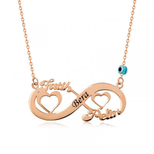 Sevgilinize sonsuz aşkı ifade etmenin en güzel, en anlamlı yollarından biri de ona sonsuzluk temalı gümüş takılar hediye etmektir. Sevgilinize hediye edeceğiniz bu özel kolye ile ona olan sonsuz aşkınızı sevginizi ifade edebilir sonsuza kadar birlikte olacağınız mesajı verebilirsiniz. Sonsuz aşk bayan kolye modeli 925 ayar gümüşten imal edilmiştir. Gümüş üzerine rose altın kaplama yapılmıştır. Rose altın kaplama yapılan gümüş bayan kolyeler parlaklığını uzun süre muhafaza eder ve oksitlenmesi gecikir. Gümüş olan zincirin boyu ortalama 45 cm'dir.  Tüm gümüş bayan kolye modellerinde olduğu gibi gümüş kalpli sonsuzluk isimli kolye modeli de el emeği ile üretilmiştir. Gümüş ve değerli taşlar nedeniyle belirtilen ortalama ürün ağırlığında ± %10 sapma olabilmektedir.