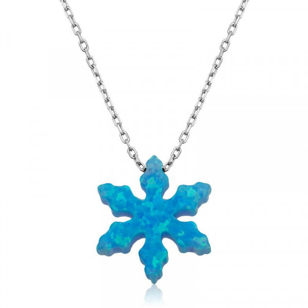 Gümüş Mavi Opal Taş Kar Tanesi Bayan Kolye