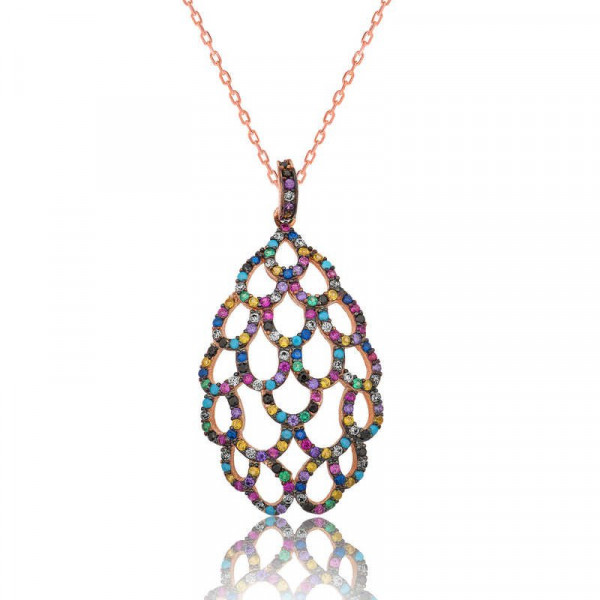 Kalbimizin ve ruhumuzun en eğlenceli tarafı olan rengarenk hayal dünyamızın yansıması özel tasarım renkli kolyeler... Bu şık kolyeyi doğum günü hediyesi, sevgililer günü hediyesi veya annelere hediye olarak özel günlerde tercih edilebilecek mükemmel bir seçenektir. Renkli bayan kolye 925 ayar gümüşten üretilmiştir. Gümüş kolyenin zincir uzunluğu 45 cm’dir. Gümüş üzerine rose altın kaplama yapılmıştır. Rose altın kaplama yapılan bayan kolyeler parlaklığını uzun süre muhafaza eder, gümüş rengini pembe renge dönüştürür ve oksitlenmeyi geciktirir. Tüm gümüş kolyelerde olduğu gibi gümüş renkli bayan kolye de el emeği ile üretilmiştir. Gümüş ve değerli taşlar nedeniyle belirtilen ortalama ürün ağırlığında ± %10 sapma olabilmektedir.